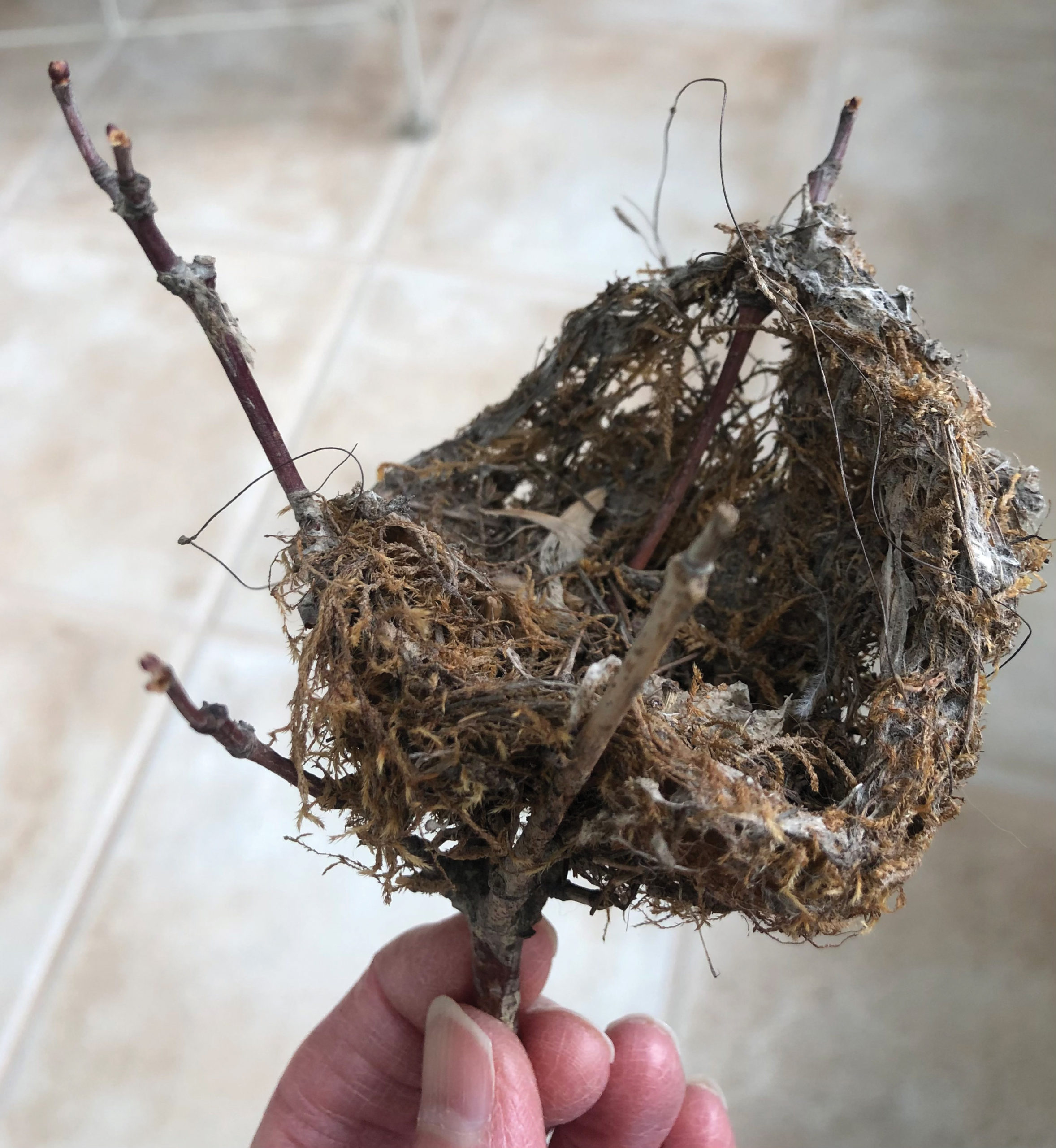There it was. A little abandoned bird’s nest in a small tree. I led her to it, carefully took it down and set it gently in the top of my gear bag.