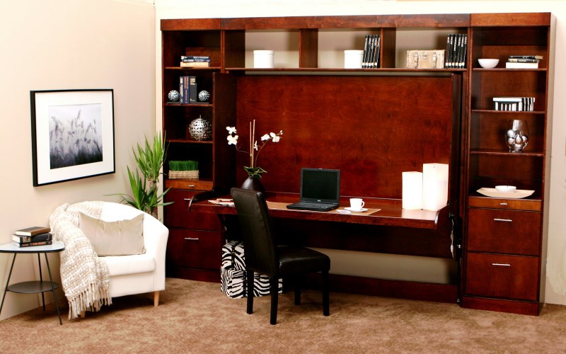 Desk beds are a good option for craft or work space, and daily or occasional sleeping. One customer used a desk bed to divide a long living area in an apartment, providing a separate home office and space for guests to sleep.