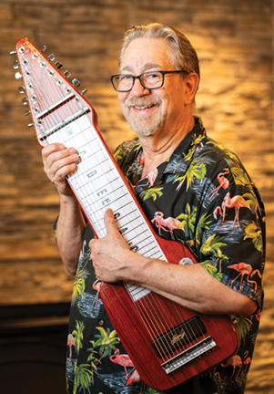 Today, many gigs later, 73-year-old Dom serenades seniors at memory and assisted living centers, playing his bright red, handmade Hawaiian steel guitar. He makes his own guitars and has sold 33. The “steel guitar” is so named for the bar used to strum. It’s his favorite instrument, though he also taught himself to play bass, keyboard, mandolin, violin, and banjo.