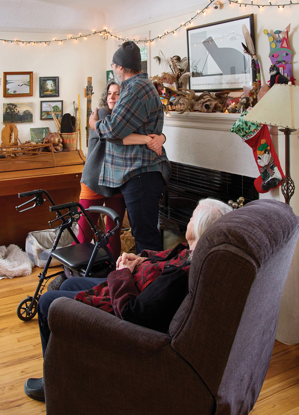 Mary and Sean bought their three-story NE Portland home in 2018. Two years later, while visiting her parents in Taos, New Mexico, Peter had a stroke. A few months and a big move later, they were all sharing the house in Portland.