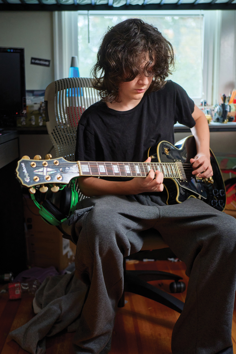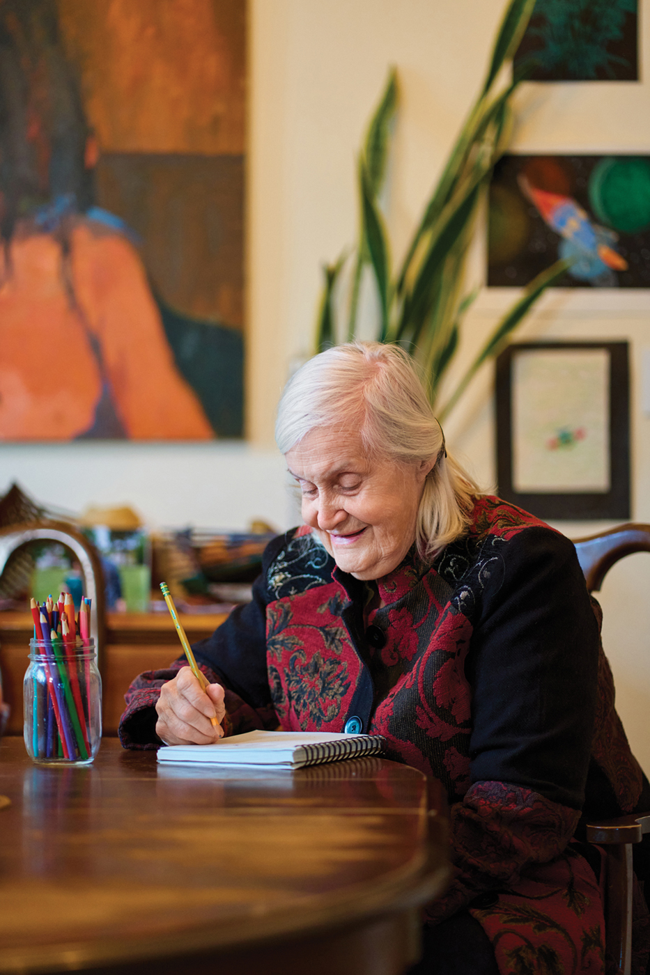 Change is constant. “Alexandra was resistant to having an aide at first, but now loves her,” says Sean. “We are flexible. When Mary teaches at night, I’m on dinner duty. Sometimes Peter takes a nap on the couch or reads — he’s a book hound. Alexandra likes to sew, fold clothes, and work on her art.”