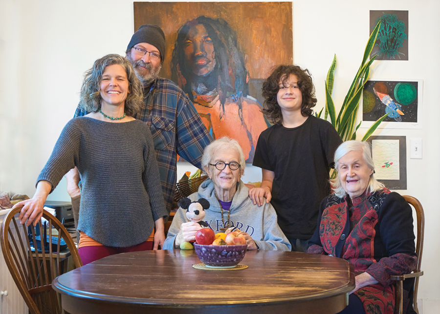 The three generations have lived together — along with two boarders — for five years. Each tends to their own busy lives while sharing a warm togetherness at home.