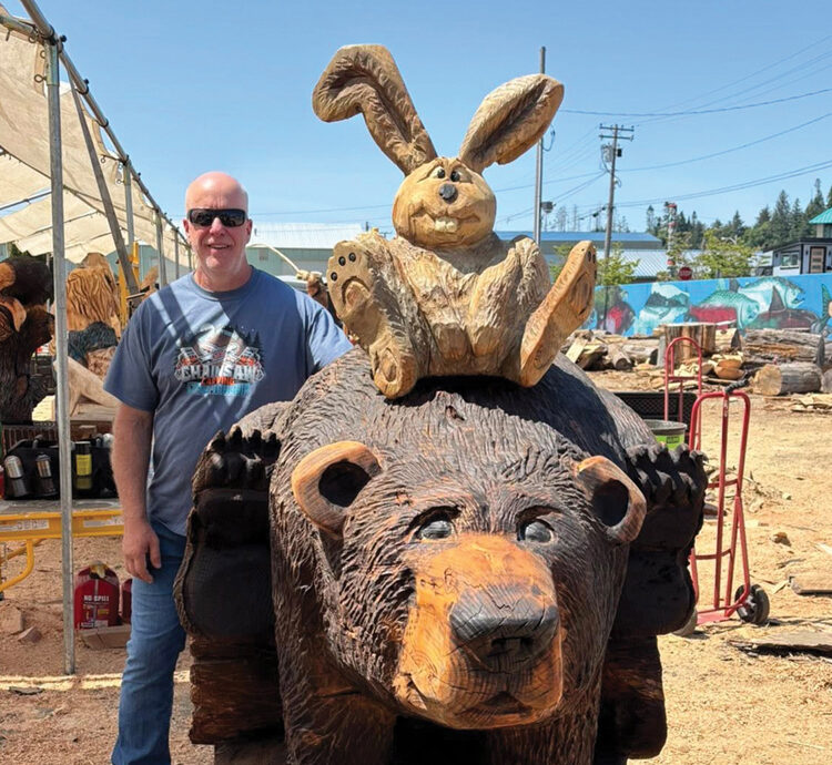 “On a Saturday morning, I love to go to my covered chainsaw-carving area and buzz out a few bears — they’re easy and popular. Chainsaw-carving is more intense and focused, requiring my full attention.”